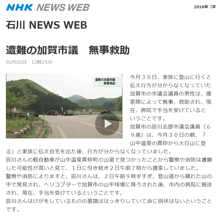 登山道から離れた山の中で発見されたようです。何はともあれ良かったです。