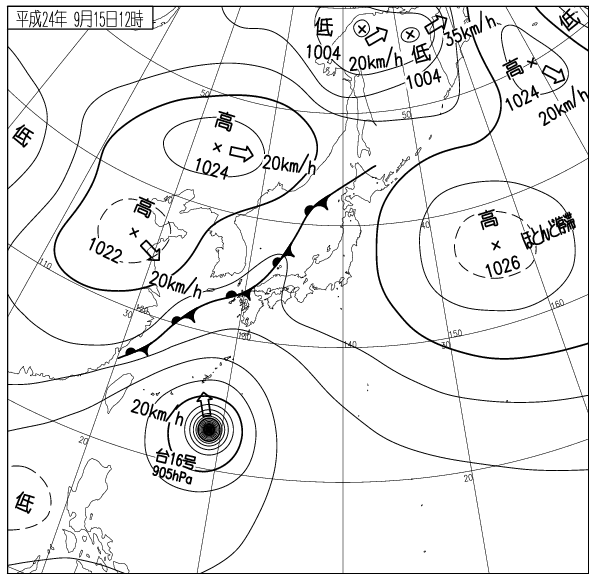 | 過去天気図(気象庁) | 2012年09月の天気図 |