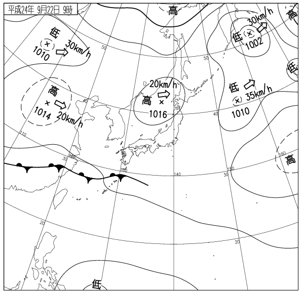 2012年9月22日午前9時の天気図
