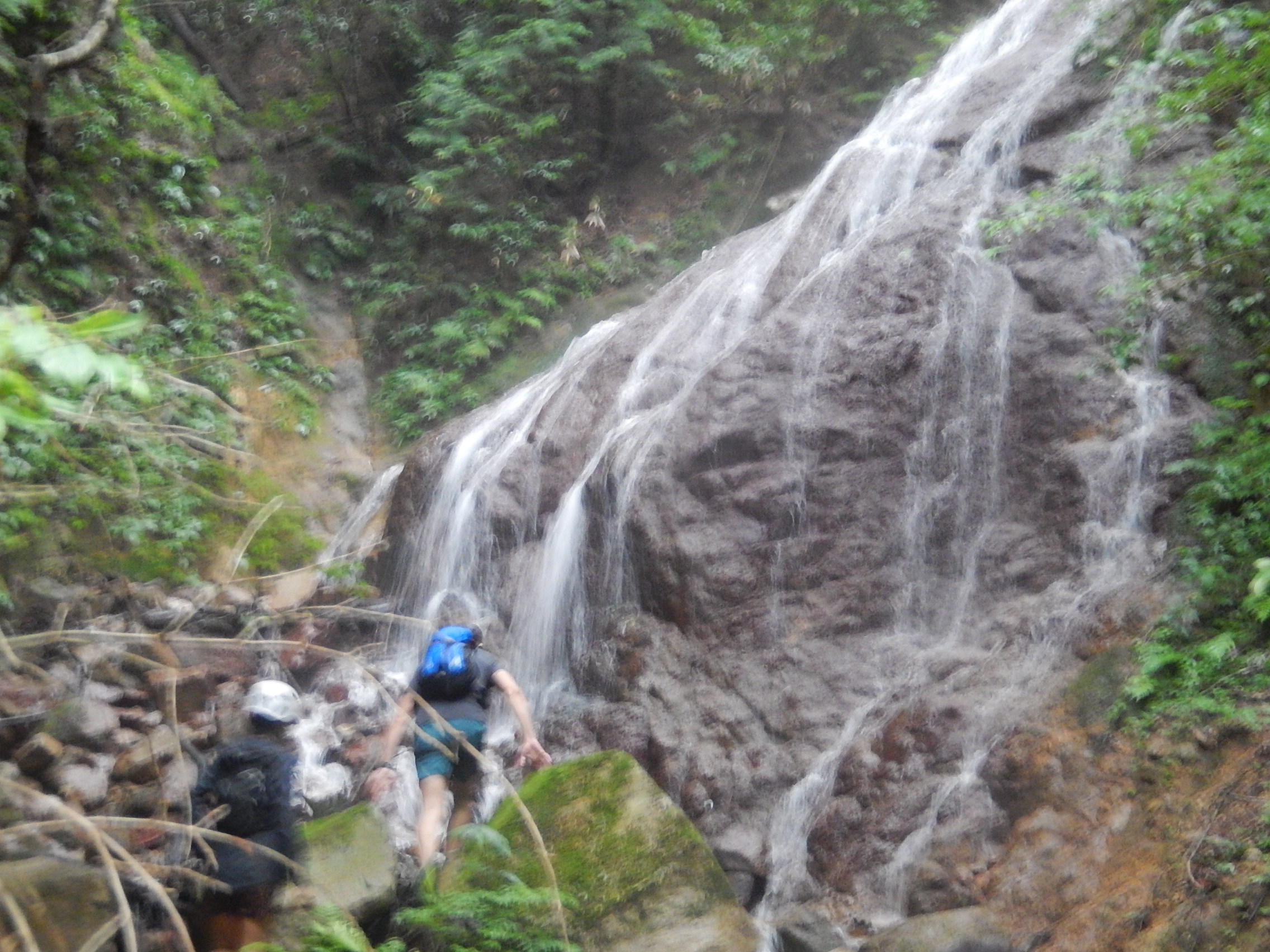 西山大滝が迫力あり、ひとり滑落したが、幸い頭を打ってなく、動けるというのでそのまま前へすすんだ。 こわいところもあったが水量が多かったことによる、いつにない景色を堪能することができた。