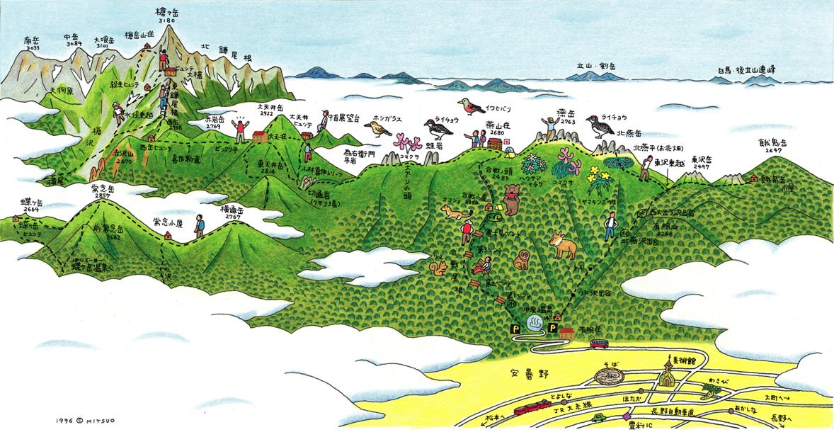 ●駐車場:しゃくなげ荘の登山者用駐車場利用(無料) ●しゃくなげ荘⇒中房温泉はバス利用(時間に注意) ★中房温泉⇒燕山荘 30分おきにベンチがあり目安となる。 日本3急登とガイドブックにあるがさほどではなかった。 ★燕山荘⇔燕岳 ルートは明確であった 頂上は狭く分かりずらいので見落とさない要注意 ■燕山荘⇒大天荘 2500mの尾根歩きでルートも問題なし。 切通岩に鎖場があるが注意して進めば問題なし ■大天荘⇒常念小屋 気持ちの良い尾根歩きが可能 天気が良ければ右に槍・穂高の大パノラマがずっと見えている。(よそみ見に 注意) ■常念小屋⇒一の沢 下り始めに木の梯子が何箇所かあるが滑るので注意が必要 タクシーは常念小屋で予約可能(手数料100円) ドコモFOMAであれば常念小屋前で通話可能 ★タクシー 一の沢⇒しゃくなげ荘(4600円) ●温泉&食事 すずむし荘で温泉と食事ができます。ここの食事はそばから信州牛のステーキ までいろんな種類があります。 因みに、ラーメンを食べました。 温泉もグーです。 http://www.janis.or.jp/users/kanmatu/ |
