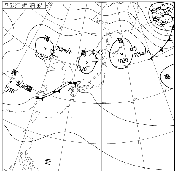 | 過去天気図(気象庁) | 2013年09月の天気図 |