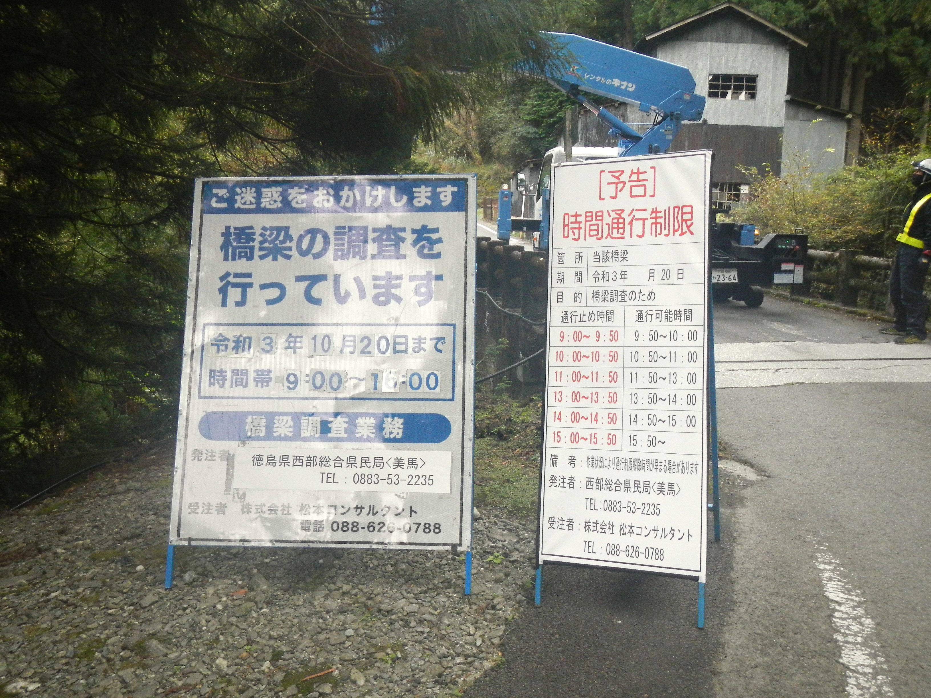 剣山手前15Kmほど、国道438号線の峠道で橋梁調査作業のための通行規制があり、1時間弱足止めされてしまった。規制は今日だけとのことであったが、結局、翌日も違う橋で足止めをくらってしまい、本当についていない。