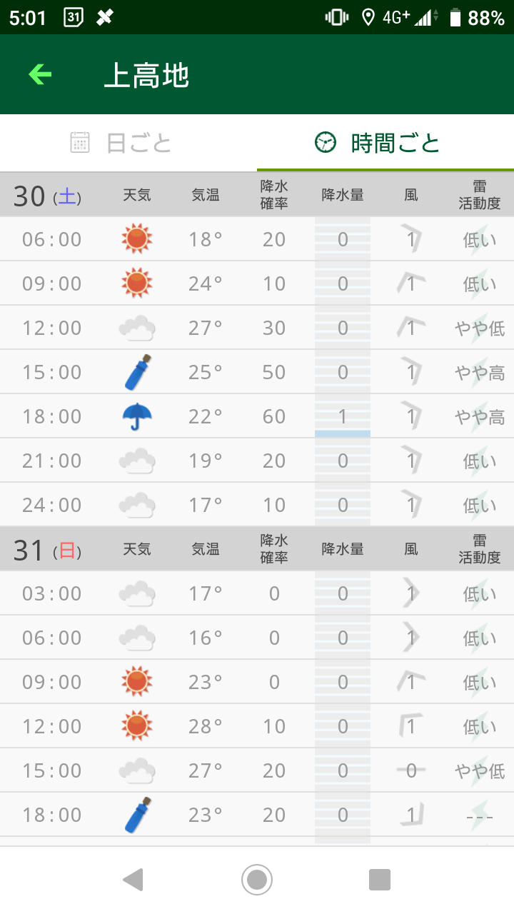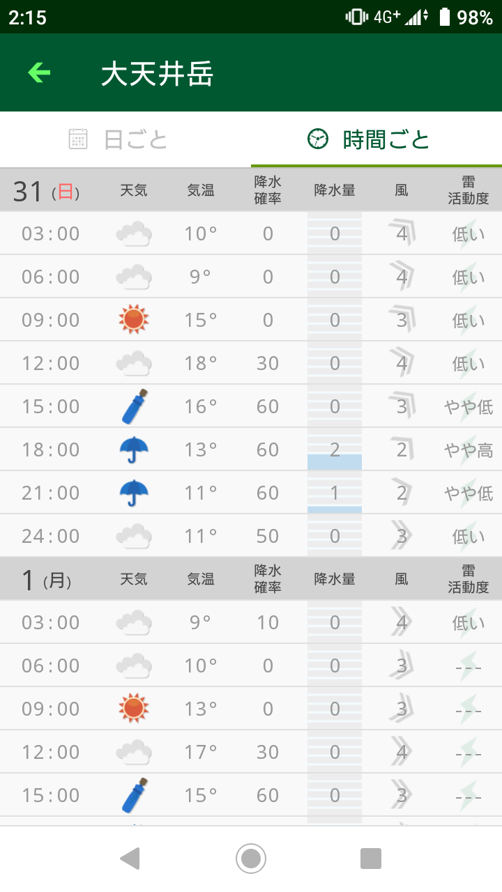 【後日参考用】初日の天気予報