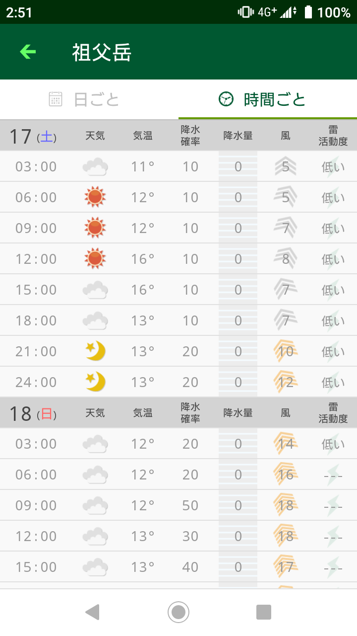 【後日参考用】初日と二日目の天気予報