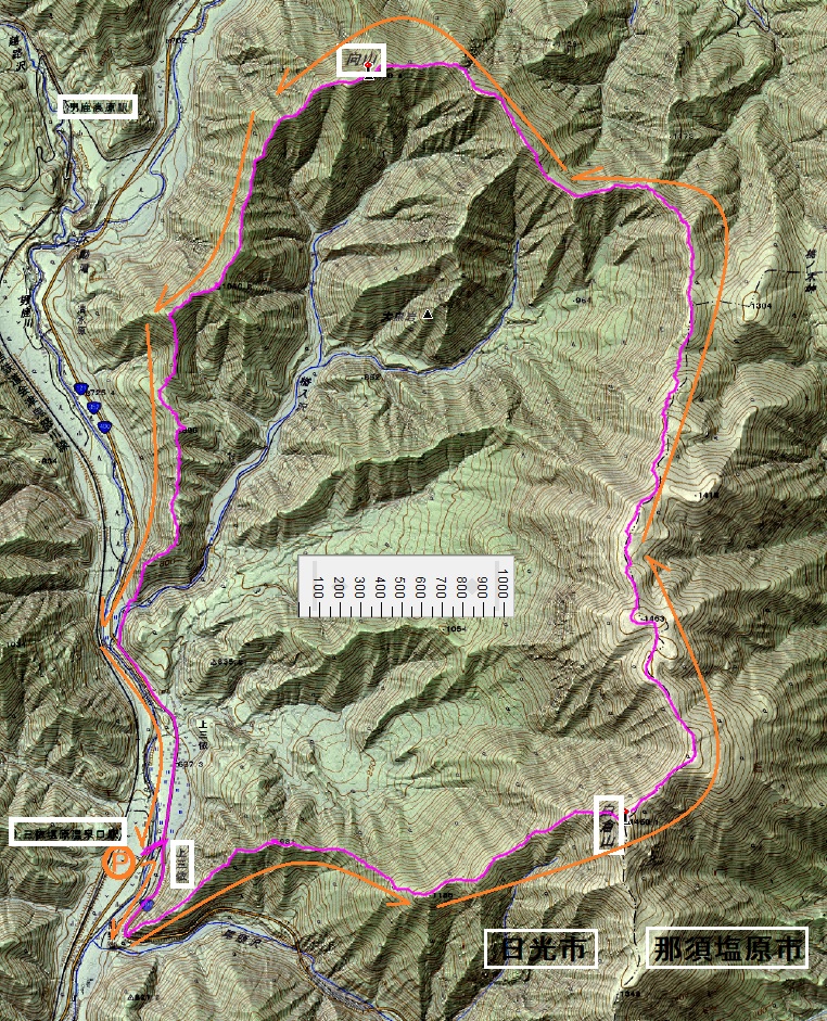 ※登山道ではなく、テープ等もありません。GPS、長袖推奨。 <取り付き〜白倉山> 標高差750mの一気登り。地形的危険個所無し。ヤブほぼ無し。 <白倉山〜向山> 笹ヤブ有り。シカ道の多くが尾根筋の西側に有り。 綺麗な稜線とは言い難い地形が多く、進む際にはGPS等による方向確認が必須。細い岩尾根有り。 <向山〜下山(林道出合)> ヤブほぼ無し。一部急な下り有り。 P1040.2以降の小ピークの多くは、東側にある巻き道を利用したが、それなりに斜度があるため必ずしも安全ではない。脚力が残っていれば、ピークを越えて進んだ方が安全ではある。 |