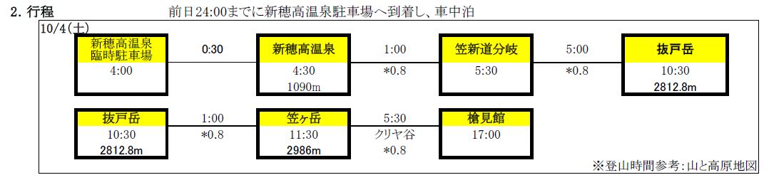 登山計画書のスケジュール