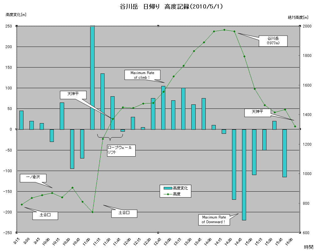 時間短縮のためロープウェーで天神平へ出てから、さらにボーダーやスキーヤーに混じりリフトを使うというアルピニストらしからぬ反則技?も使い大幅に時間短縮。それでも日帰り登山としては、十分な長さを味わえると思います。