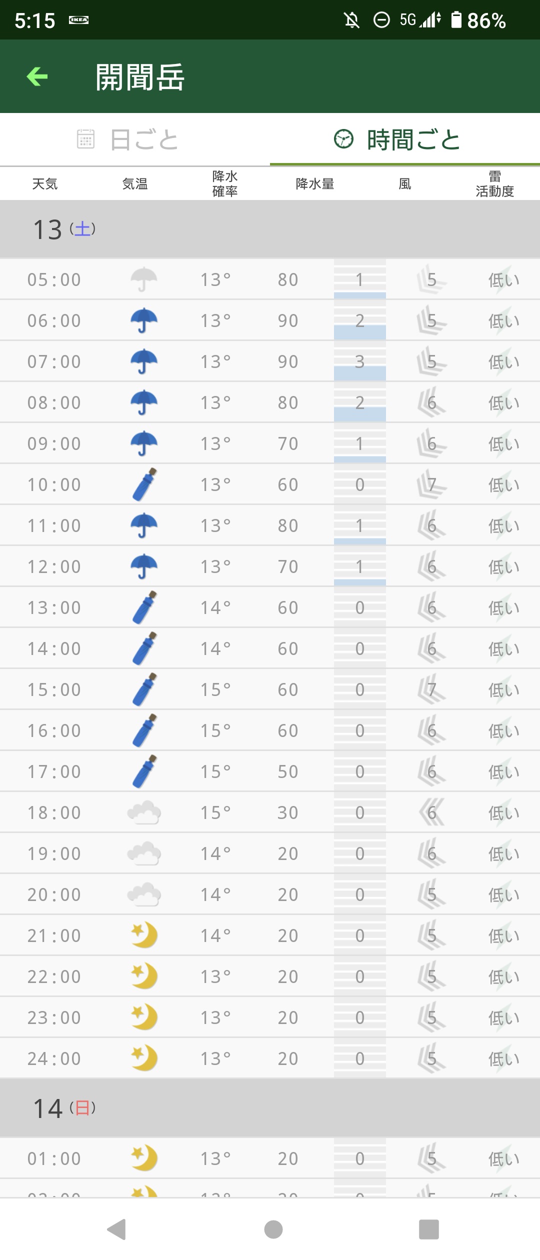 【後日参考用】当日の天気予報