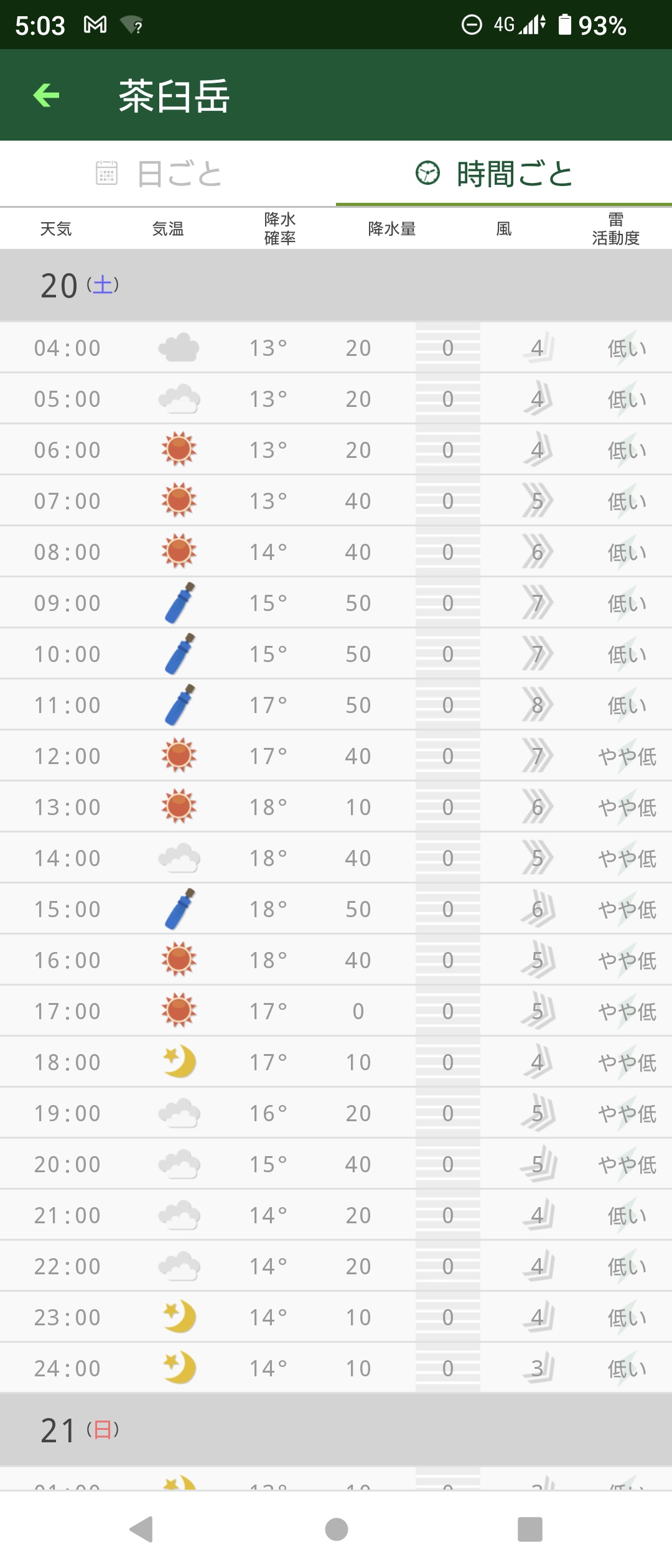 【後日参考用】初日の天気予報