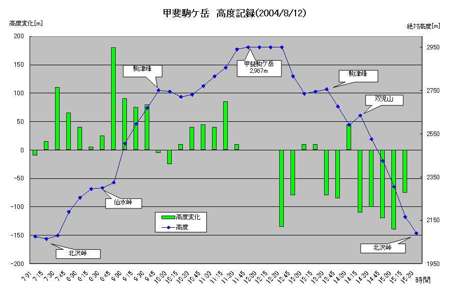 北沢峠〜仙水峠〜駒津峰〜甲斐駒ケ岳〜駒津峰〜双児山〜北沢峠