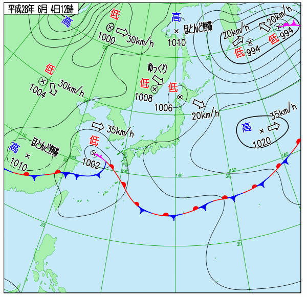 | 過去天気図(気象庁) | 2016年06月の天気図 |