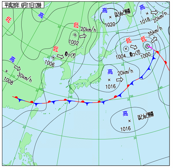 | 過去天気図(気象庁) | 2016年06月の天気図 |