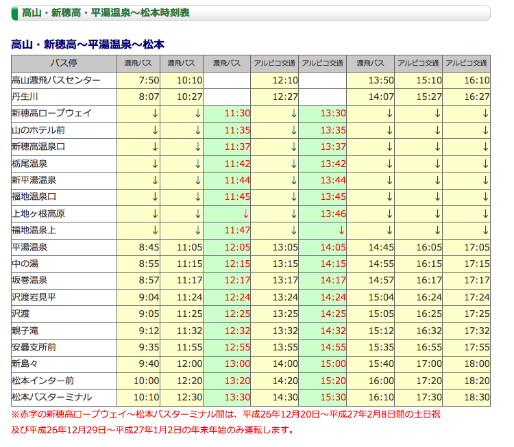1.十石山東尾根(2.5h)白骨温泉(夏道尾根) 全天候可能 タクシーで車へ0263−27−8191アルピコ。バス松本行きは15:50(これ一本のみ) 2.金山岩北尾根(2.0h)平湯スキー場(夏道尾根) 全天候可能 平湯温泉13:05発12分で坂巻温泉。14:45、16:05、17:05発あり 3.大黒岳東尾根から乗鞍林道経由スキー場へ 視界必要 |